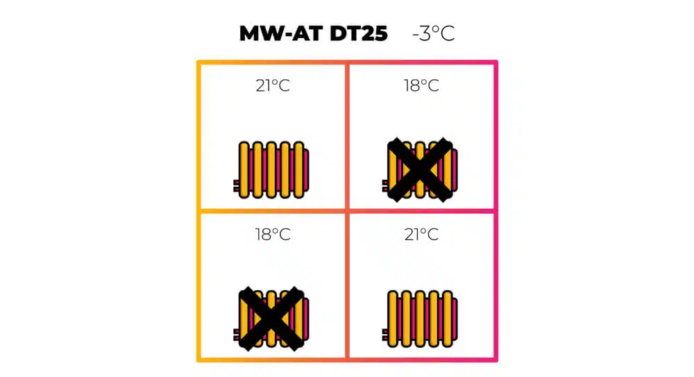 Now, let’s say you don't use two rooms, so you put them into a setback temperature of 18 °C to save energy.