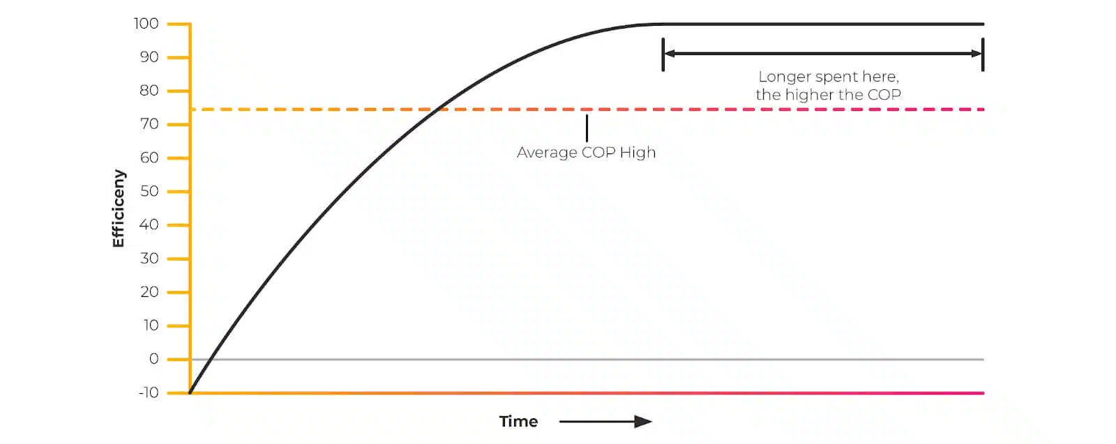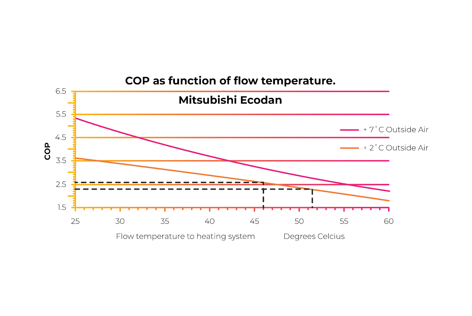 The lower the flow temperature inside your heat source, heat pump, or gas boiler, the more efficient it is.